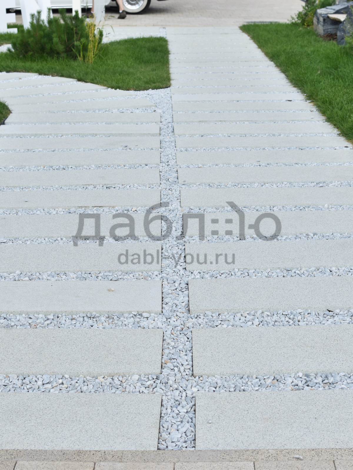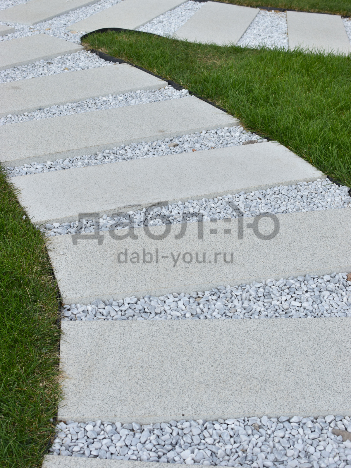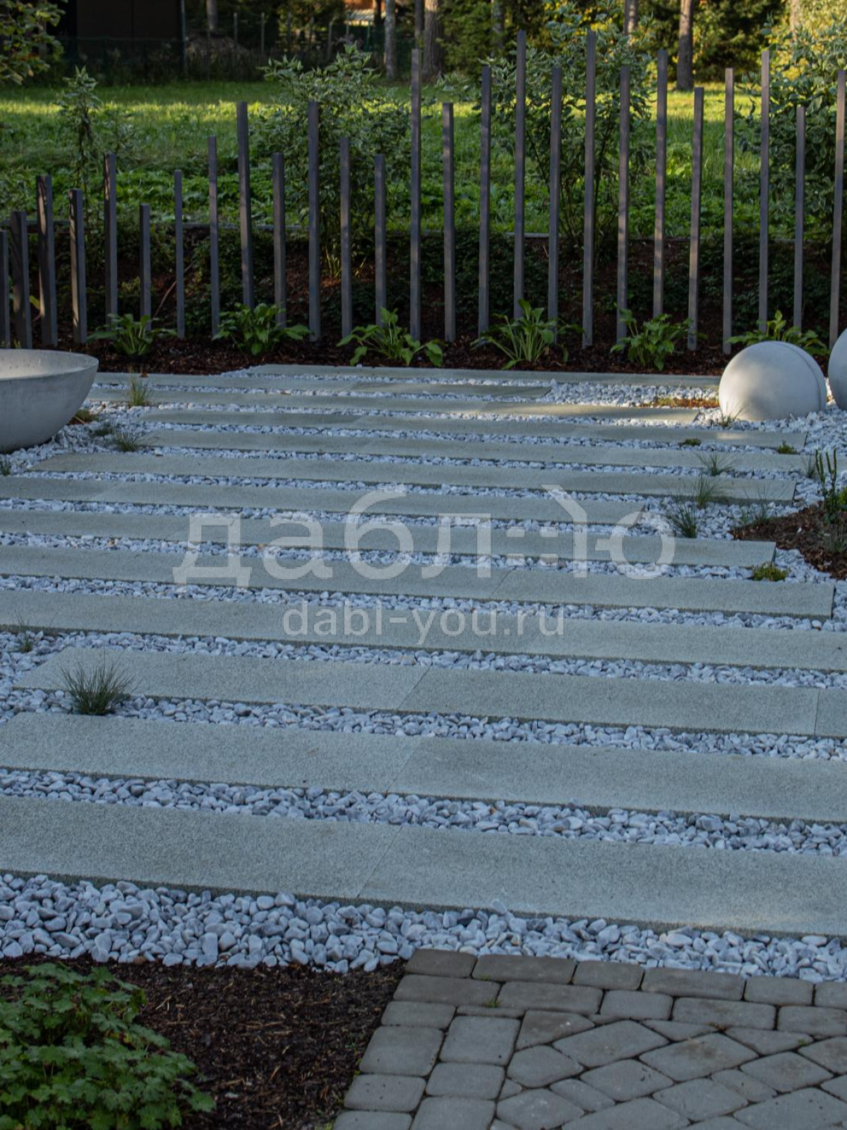 Пошаговая плита из гранита Мансуровский (боковые грани пиленые, верх термо), 1200*400*50мм.Цвет белый, светло-серый, немного с зеленцой может быть