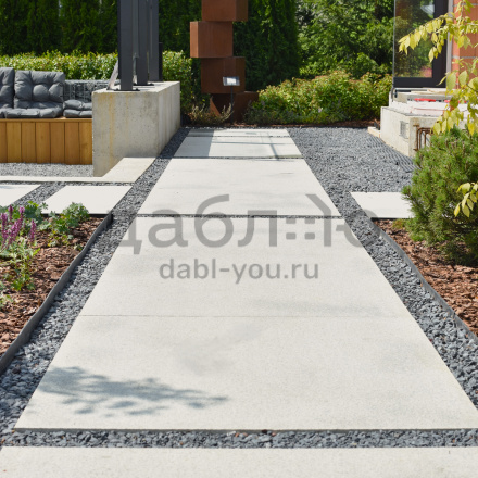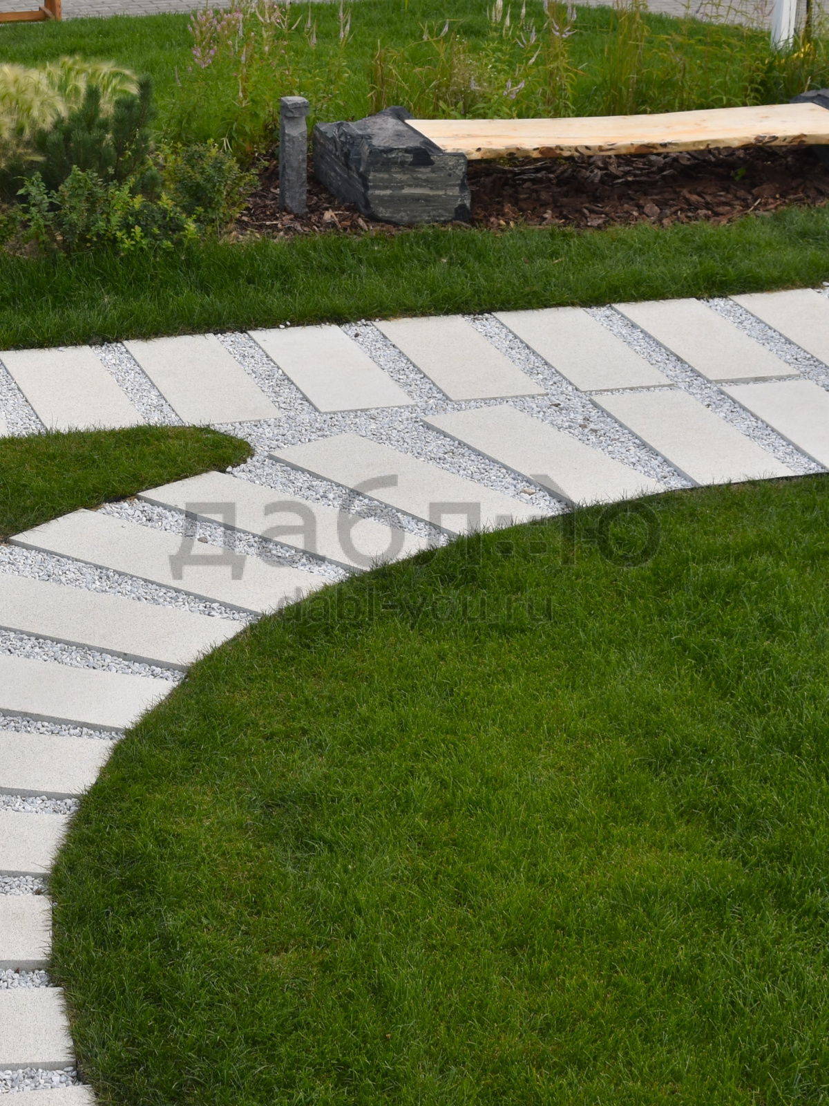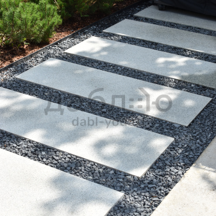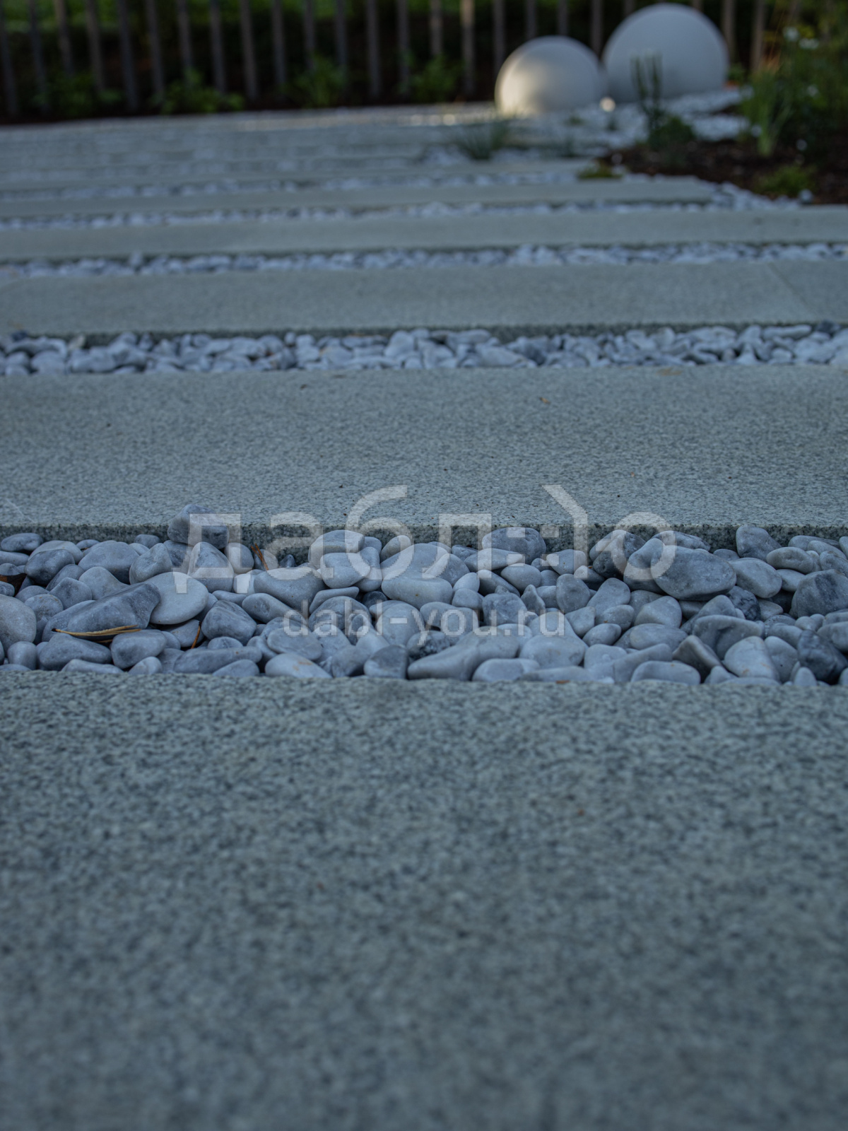 Пошаговая плита из гранита Мансуровский (боковые грани пиленые, верх термо), 1200*400*50мм.Цвет белый, светло-серый, немного с зеленцой может быть