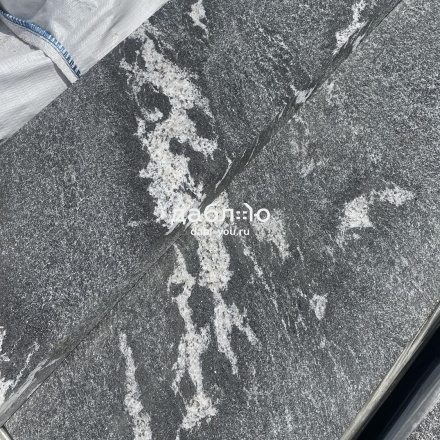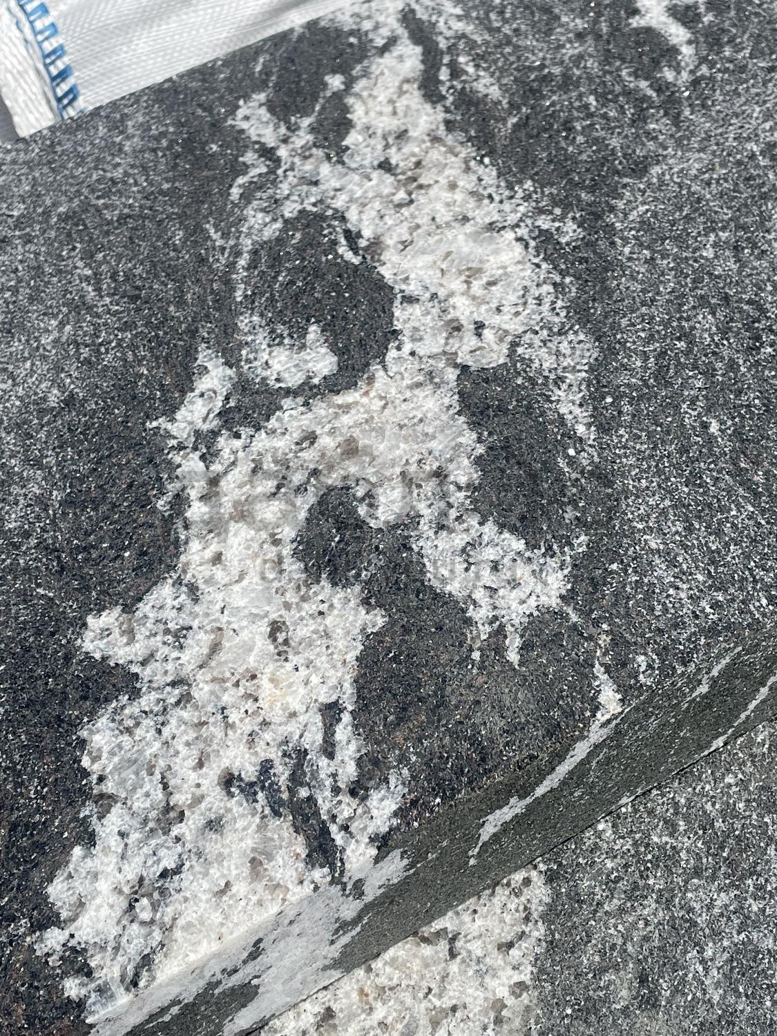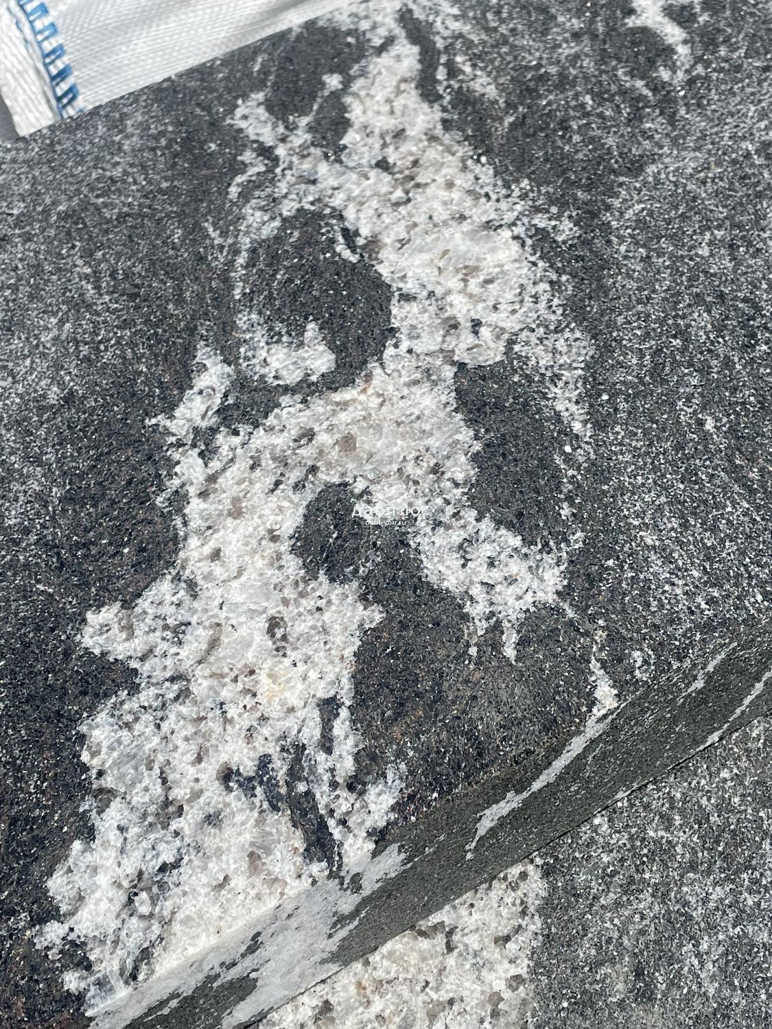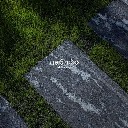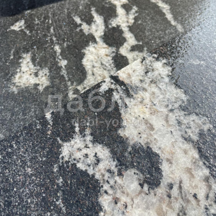 Пошаговая плита из гранита Габбро Урал (боковые грани пиленые, верх бучарда), 1200*400*50мм.Цвет черный с белыми разводами