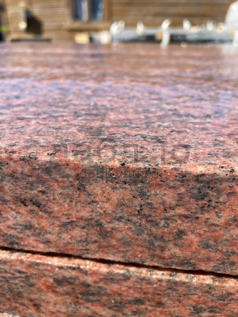 Пошаговая плита из гранита Винга (боковые грани пиленые, верх термо), 1200*400*50мм.Цвет красно-розовый