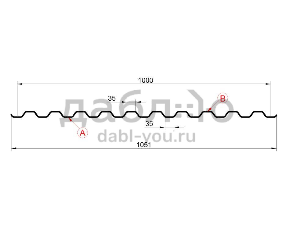 Толщина листа, мм: 0,4 / 0,5 / 0,55 / 0,7