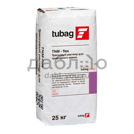 Трассовый раствор для укладки плит из натурального камня Tubag TNM-flex. Трассовый раствор для природного камня. Эластичный раствор для укладки слоем средней толщины и фиксации нецветоустойчивых плит из природного камня и керамической плитки.- Цвет: натурально-белый