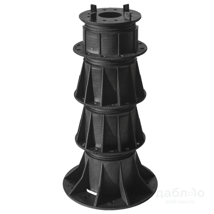Регулируемая опора Level 3D для керамогранита 280-435 мм. Опоры выполнены из полипропилена — термостойкого плотного материала, не подвергающегося коррозийному растрескиванию и воздействию агрессивной химической среды. Универсальность опор дает возможность использовать их при строительстве объектов с различными типами покрытия: террасной доской, изделиями из бетона, плитами из натурального камня или утолщенного керамогранита. Межконструкционное пространство обеспечивает хорошую вентиляцию, защиту от солнечных лучей и эффективную теплоизоляцию.Толщина: 280-435 мм