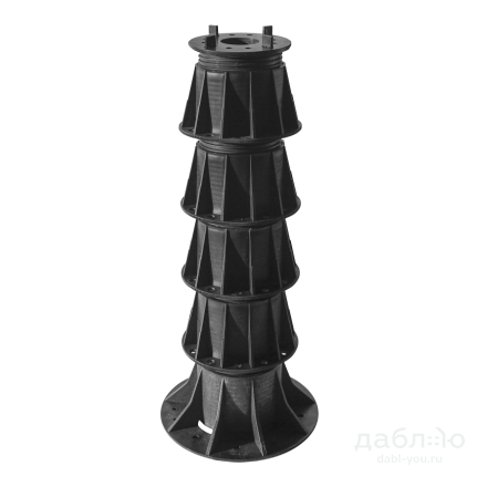 Регулируемая опора Level 3D для керамогранита 390-625 мм. Опоры выполнены из полипропилена — термостойкого плотного материала, не подвергающегося коррозийному растрескиванию и воздействию агрессивной химической среды. Универсальность опор дает возможность использовать их при строительстве объектов с различными типами покрытия: террасной доской, изделиями из бетона, плитами из натурального камня или утолщенного керамогранита. Межконструкционное пространство обеспечивает хорошую вентиляцию, защиту от солнечных лучей и эффективную теплоизоляцию.Толщина: 390-625 мм
