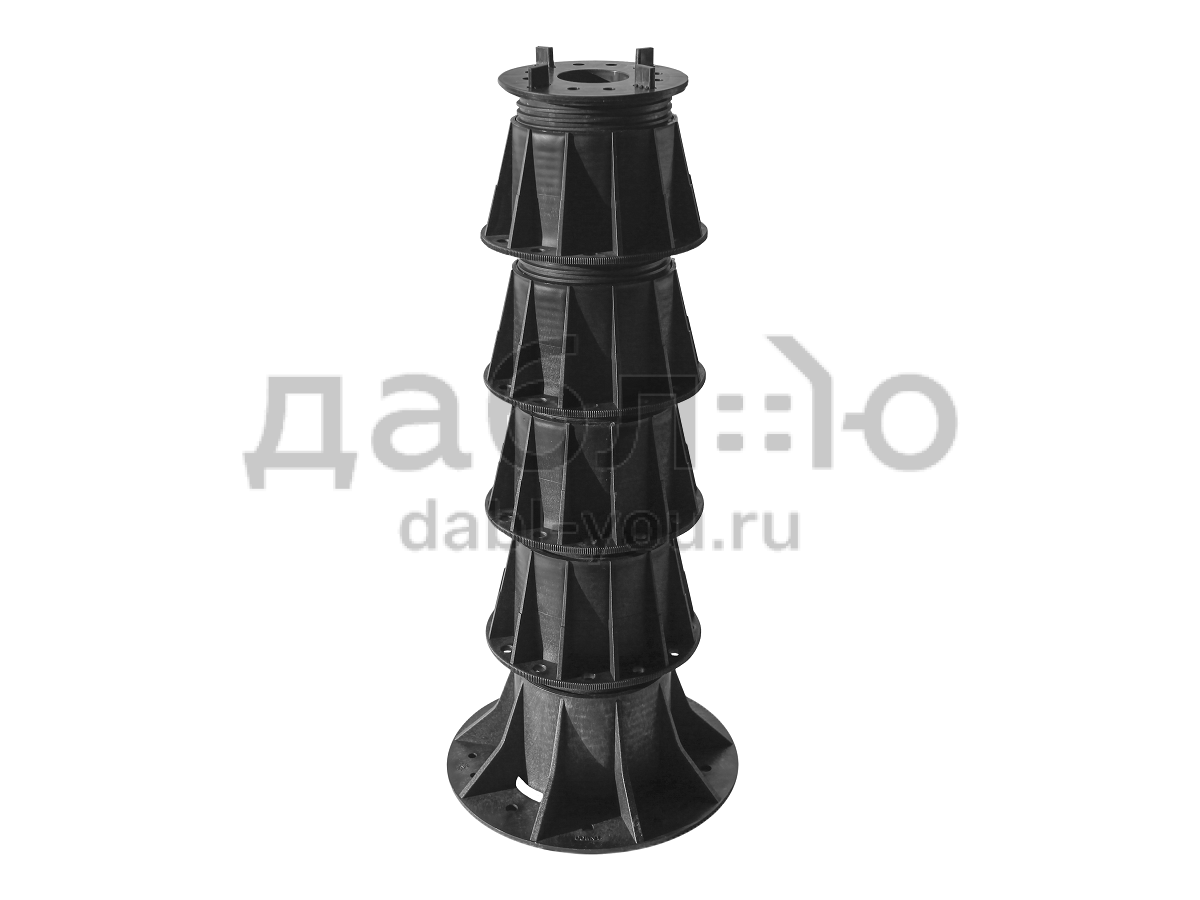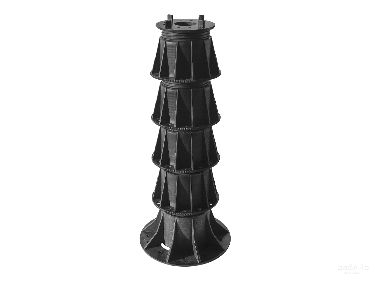 Регулируемая опора Level 3D для керамогранита 390-625 мм. Опоры выполнены из полипропилена — термостойкого плотного материала, не подвергающегося коррозийному растрескиванию и воздействию агрессивной химической среды. Универсальность опор дает возможность использовать их при строительстве объектов с различными типами покрытия: террасной доской, изделиями из бетона, плитами из натурального камня или утолщенного керамогранита. Межконструкционное пространство обеспечивает хорошую вентиляцию, защиту от солнечных лучей и эффективную теплоизоляцию.Толщина: 390-625 мм