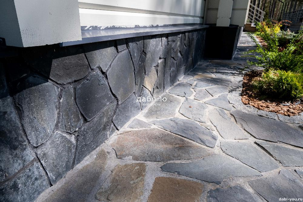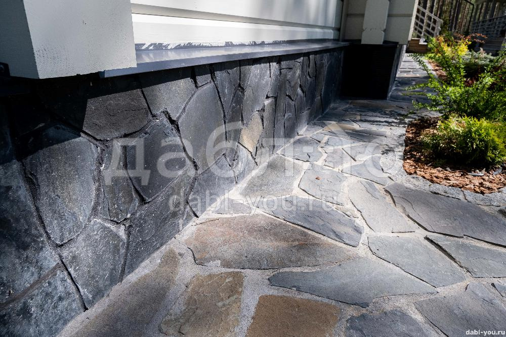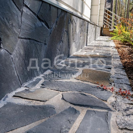 Шунгит серо-рыже-черный рваный край 10-30 мм. Шунгит как натуральный камень известен прочностью и низким водопоглощением. Встречаются разновидности шунгита чёрного, тёмно-серого и коричневого цвета. Для облицовки фасада или цоколя дома подойдет толщина 10-30 мм.- Вес: 61,5 кг/м2