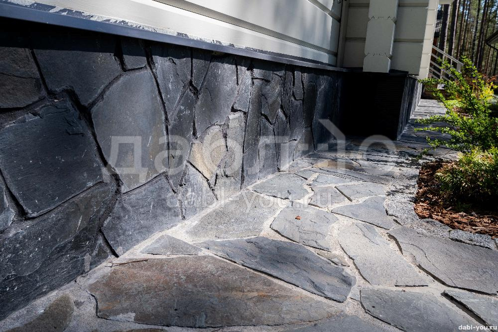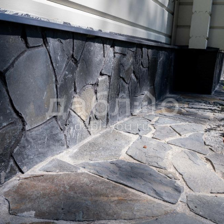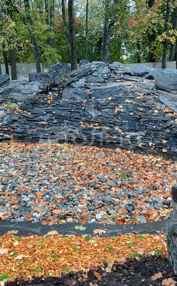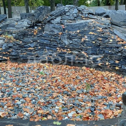 Шунгит серо-рыже-черный рваный край 70-100 мм. Необработанный рваный край можно использовать для благоустройства участка. Шунгит как натуральный камень, известен прочностью, низким водопоглощением. Встречаются разновидности шунгита чёрного, тёмно-серого и коричневого цвета.- Вес: 200 кг/м2