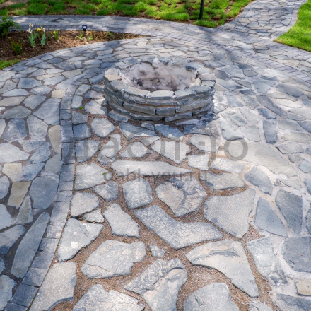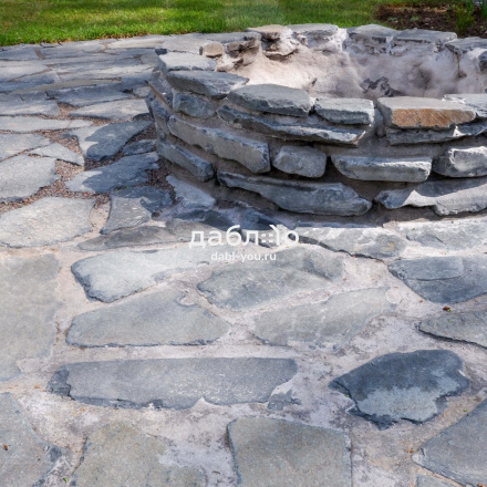 Шунгит серо-рыже-черный рваный край галтованный 50-70 мм. Применяется в таком виде на мощение. Этот камень пользуется бешеной популярностью среди частного и городского домостроения. Шунгит как натуральный камень известен прочностью и низким водопоглощением.- Вес: 120 кг/м2