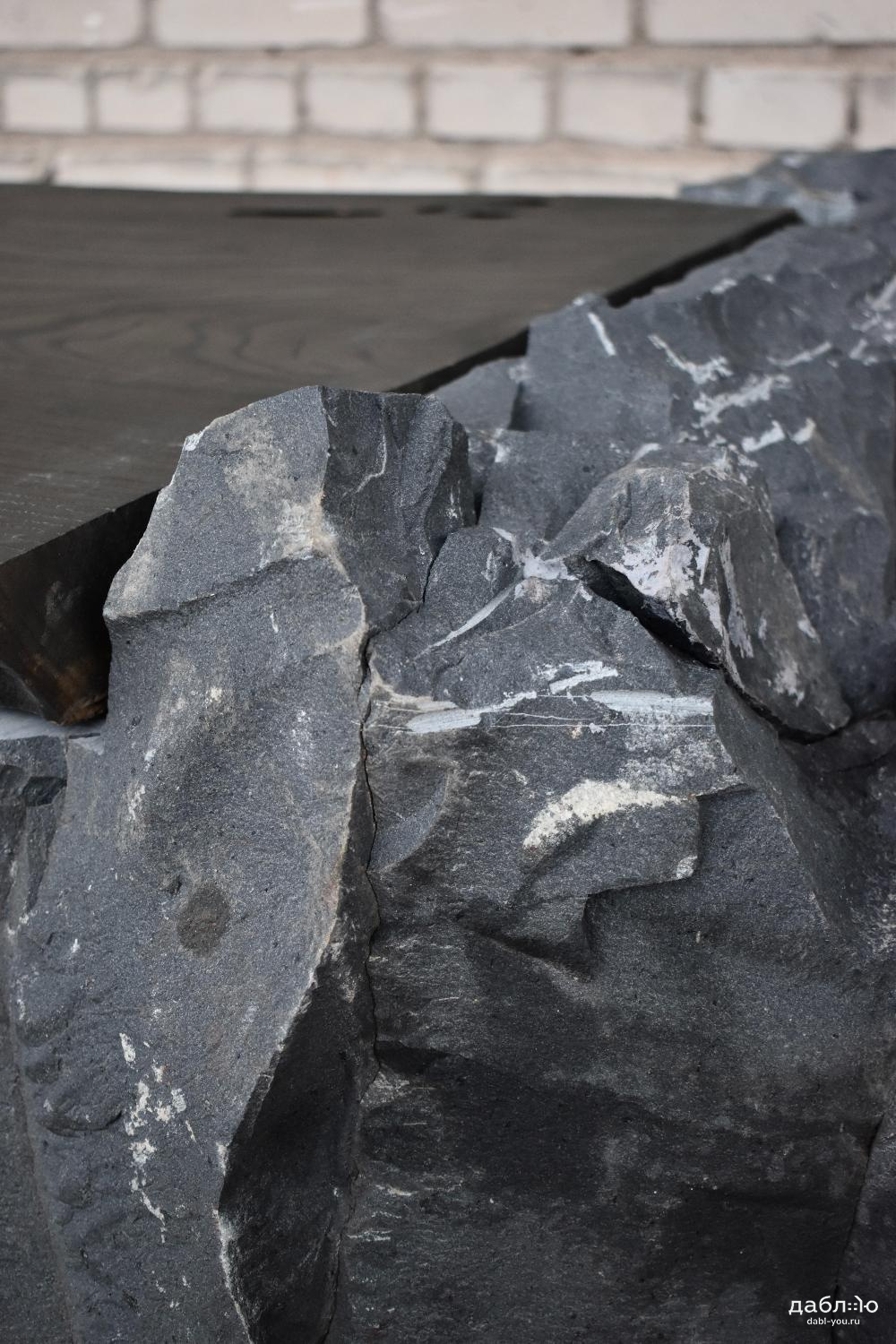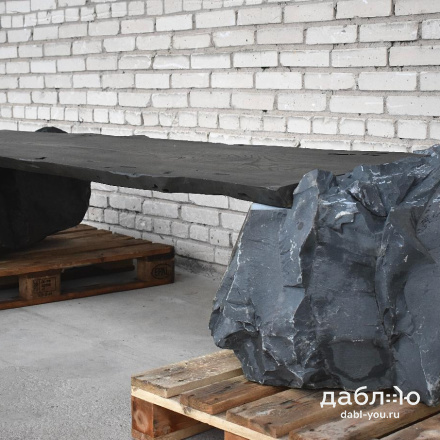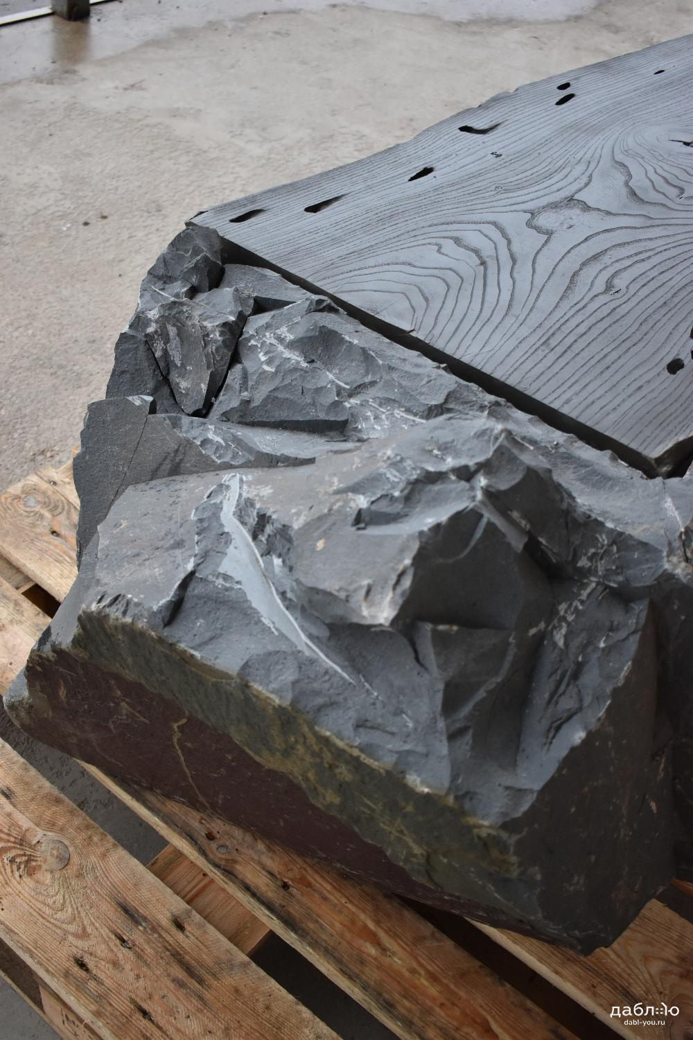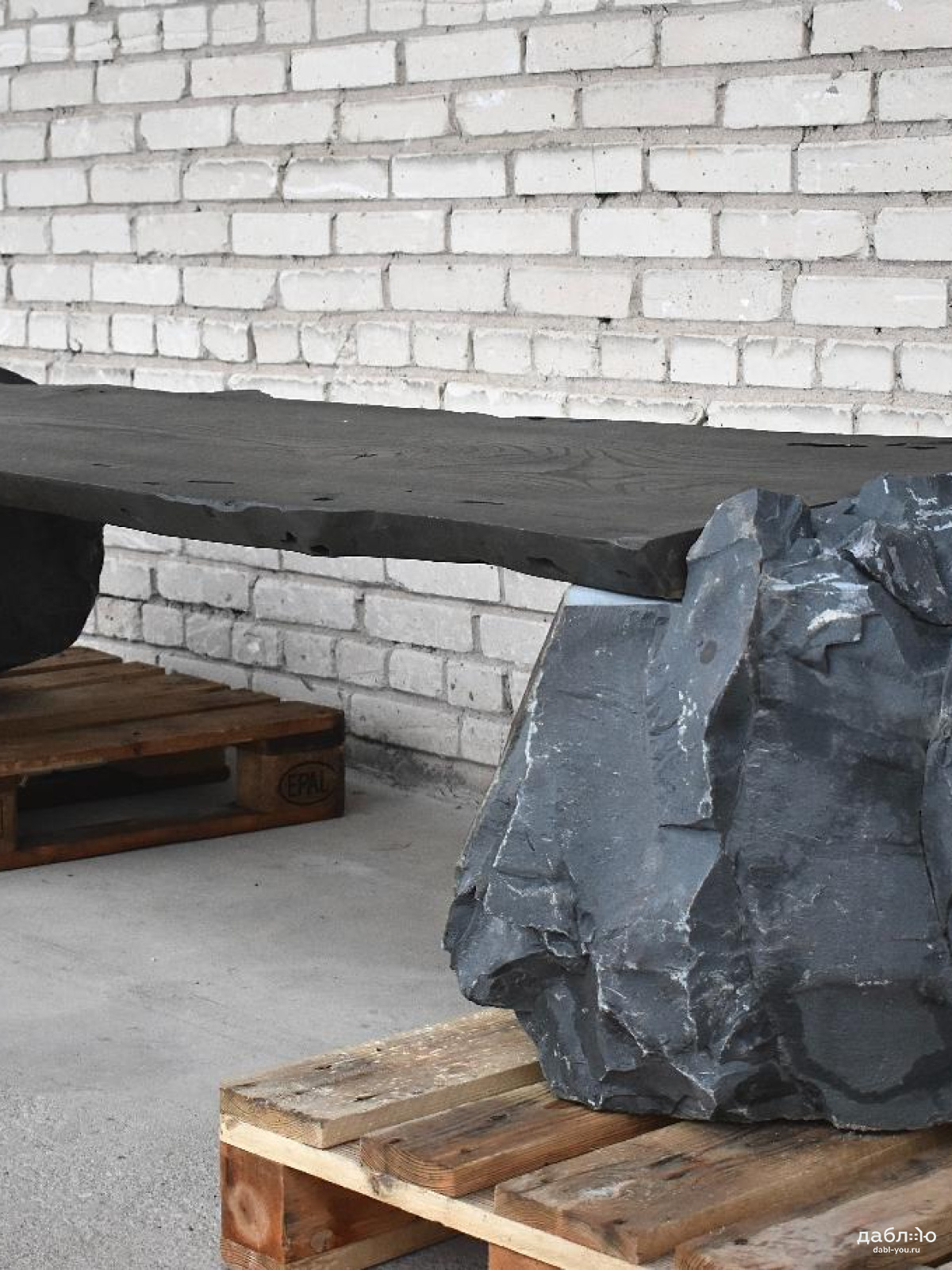 Скамейка из валунов №2. Скамья изготовлена из специально подобранного дерева и валунов под Ваши вкусы.