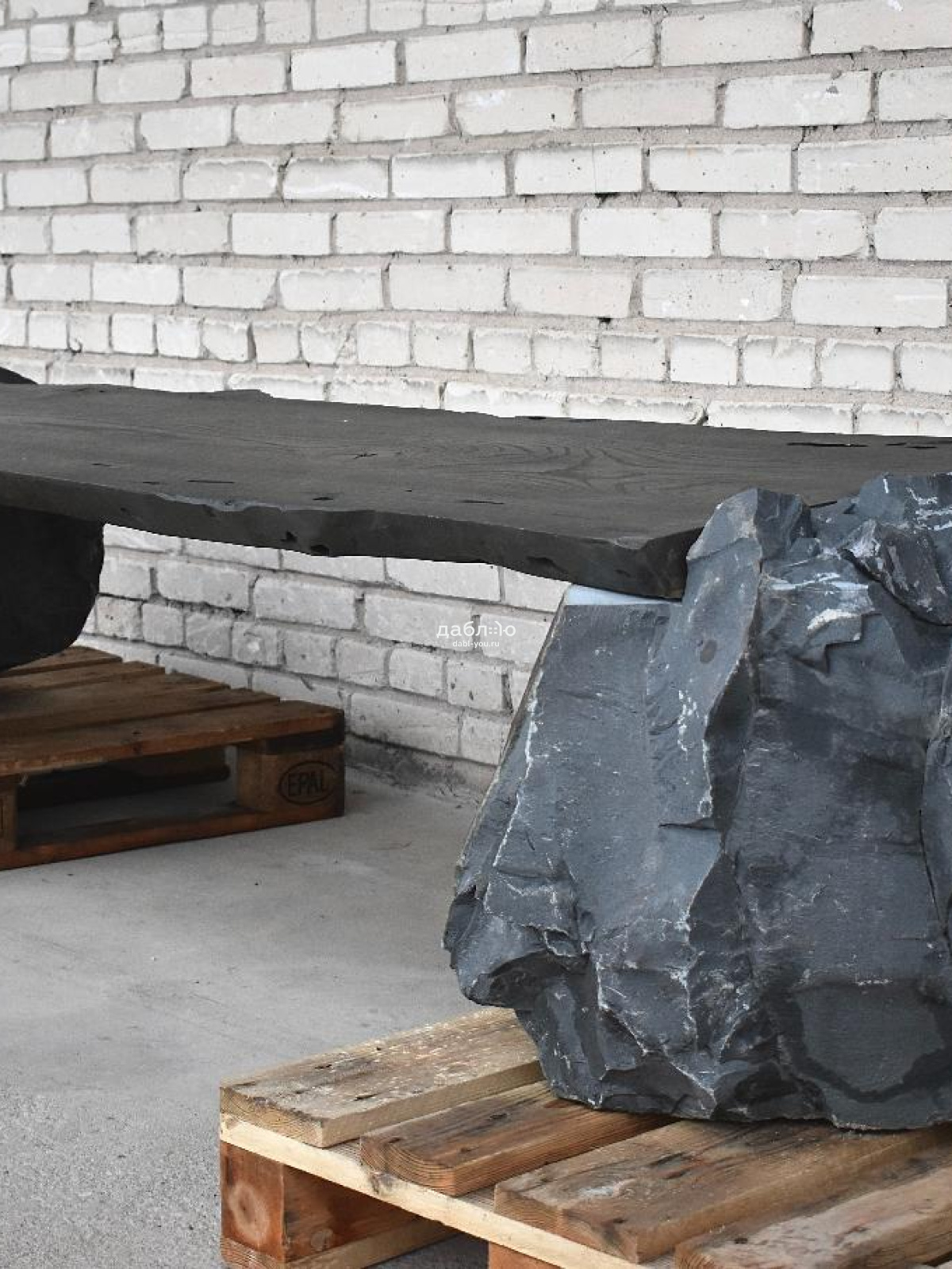 <p>Фактура: природный камень чёрный мрамор, скамья из массива азиатского карагача</p>