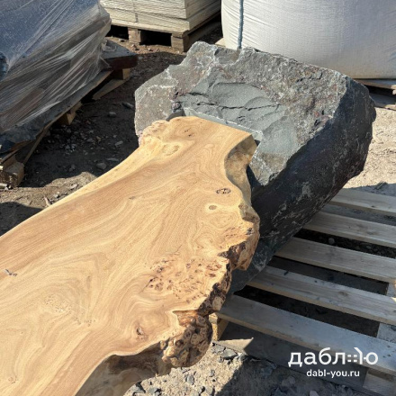 Скамья из валунов порфирита с деревянной поверхностью из азиатского карагачаСочетание природной мощи камня и теплоты благородного дерева. Скамья выполнена из массивных валунов порфирита, каждый из которых имеет уникальную форму и фактуру. Деревянная поверхность из азиатского карагача подчёркивает естественную красоту материала и добавляет уют в любое пространство.