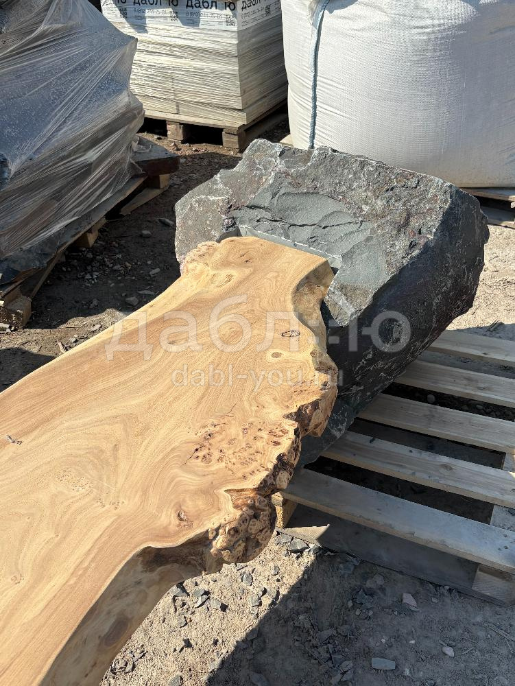 Фактура: природный порфирит, скамья из массива азиатского карагача