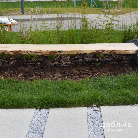 Эта скамья органично впишется в современный или природный ландшафт, создавая уютное место для отдыха и созерцания.