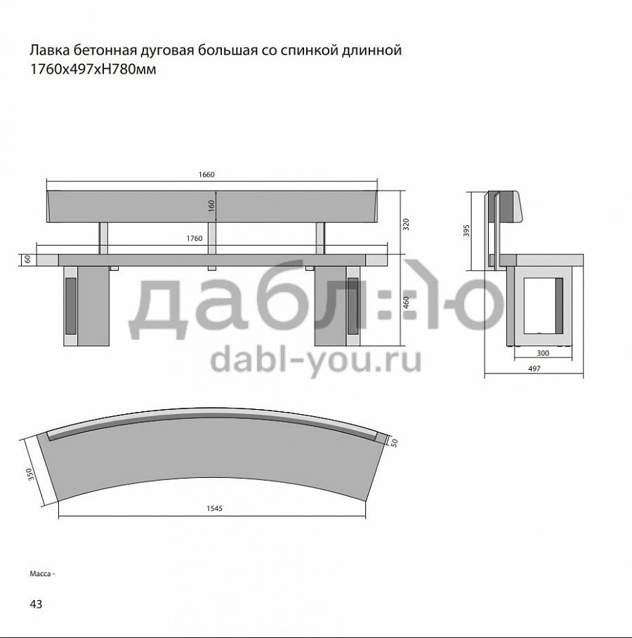 Скамья для костровой зоны Concretika Форма 180 со спинкой
