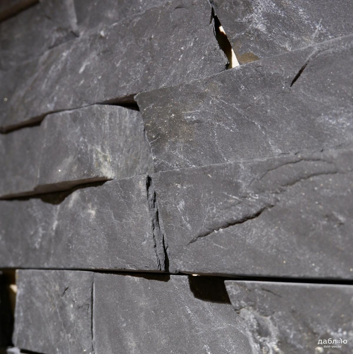 Сланец графит полоска неторцованая В 30/60/90хпогон. Сланец считается экологически чистым материалом, поэтому его можно использовать как на фасаде Вашего дома, так и внутри помещений. Черный цвет камня выглядит очень изящно и благородно и легко сочетается с другими материалами.- Вес: 50 кг/м2