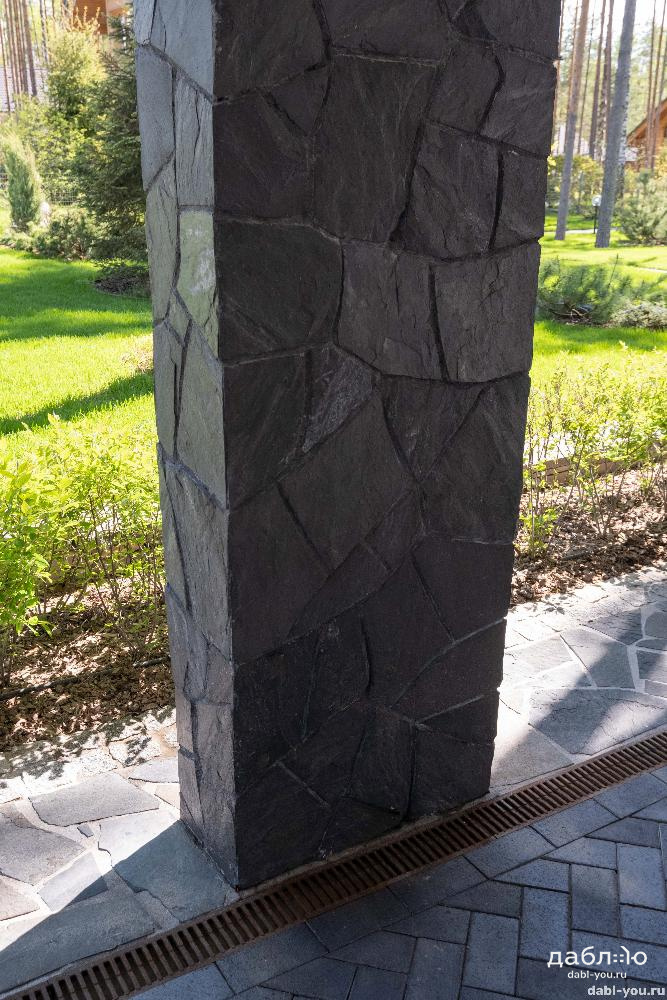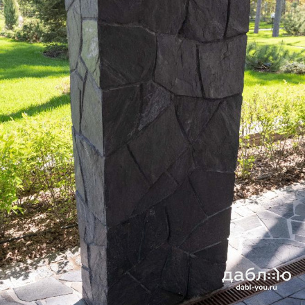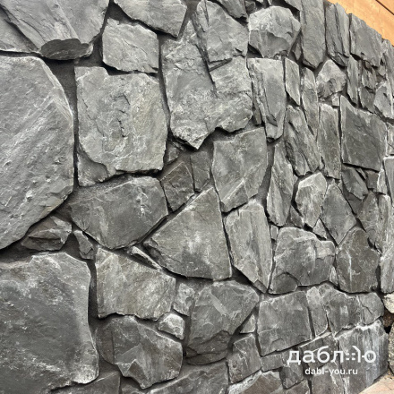Сланец графит рваный край 10-25 мм. Сланец считается экологически чистым материалом, поэтому его можно использовать как на фасаде Вашего дома, так и внутри помещений. Черный цвет камня выглядит очень изящно и благородно и легко сочетаются с другими материалами.- Вес: 60 кг/м2