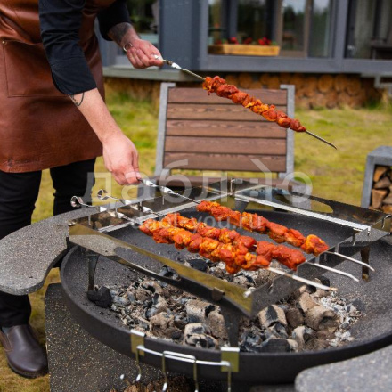 Использование костровой чаши CONCRETIKA со съемной столешницей стало еще удобнее! Поставить бокал или положить инструменты во время готовки теперь можно на навесную бетонную столешницу. Она легко моется, не боится осадков и перепадов температур.В комплекте поставки – 1 шт. На чашу 80 см можно разместить одну, две или три столешницы. За счет удобной навесной системы, столешницы легко одеваются и не требуют специального монтажа.