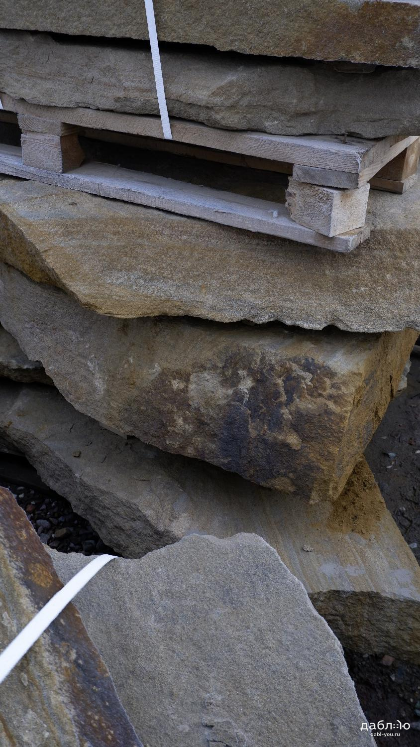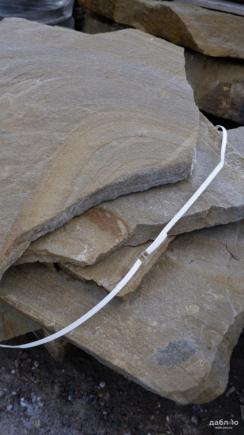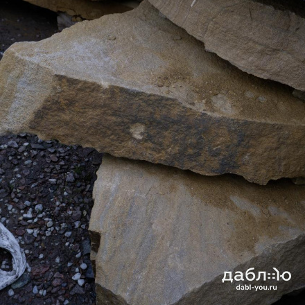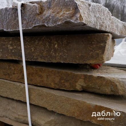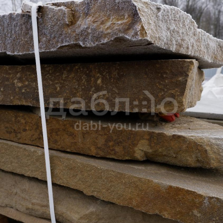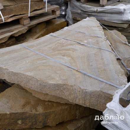 Толстомерная ступень из бежевого песчаника. Красивый материал для украшения Вашего участка. Можно использовать для создания лестницы, водопадов, водоемов.Характеристики