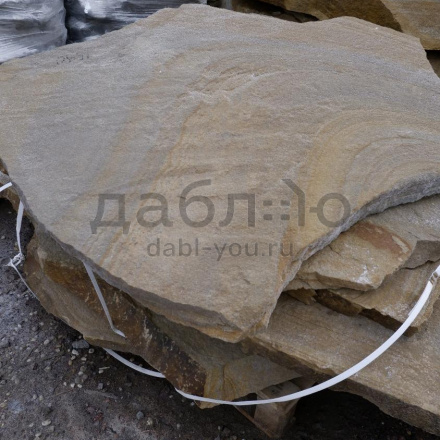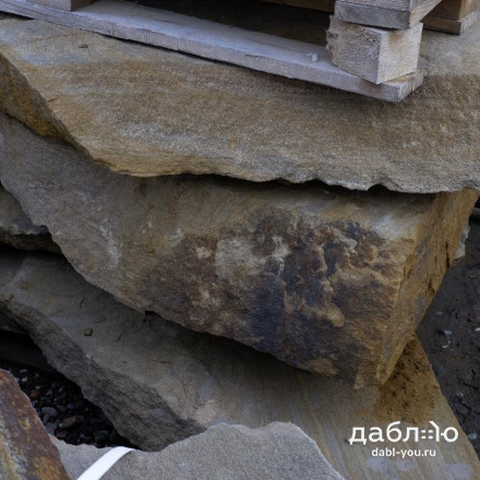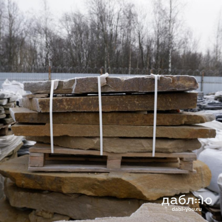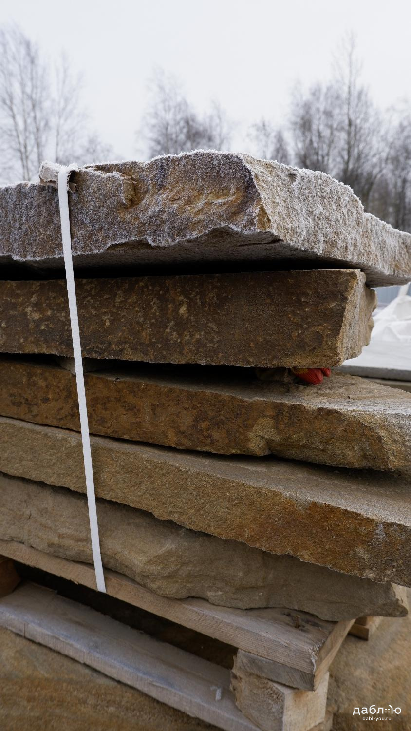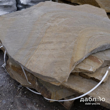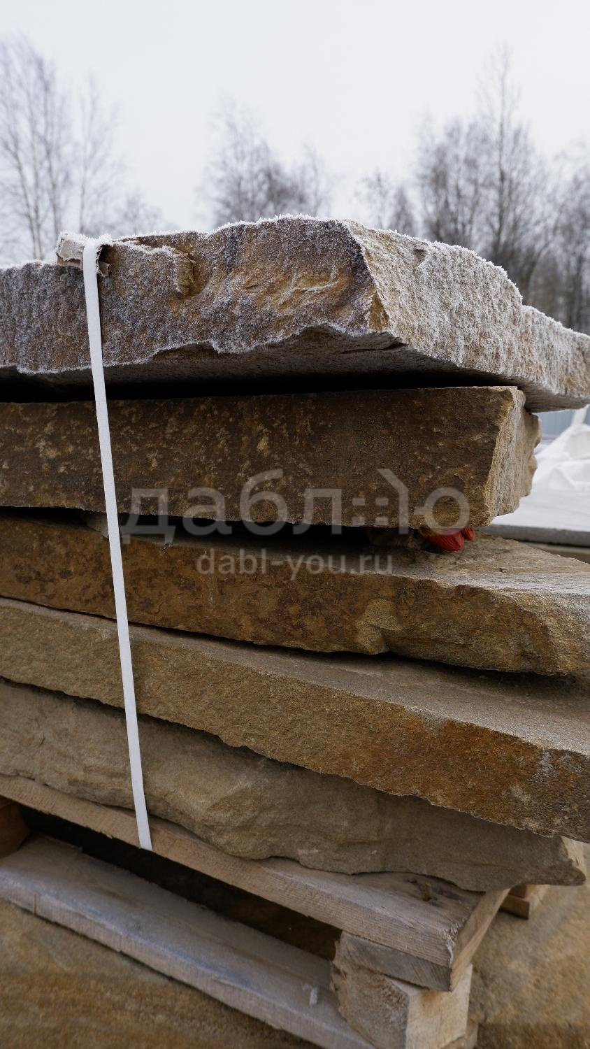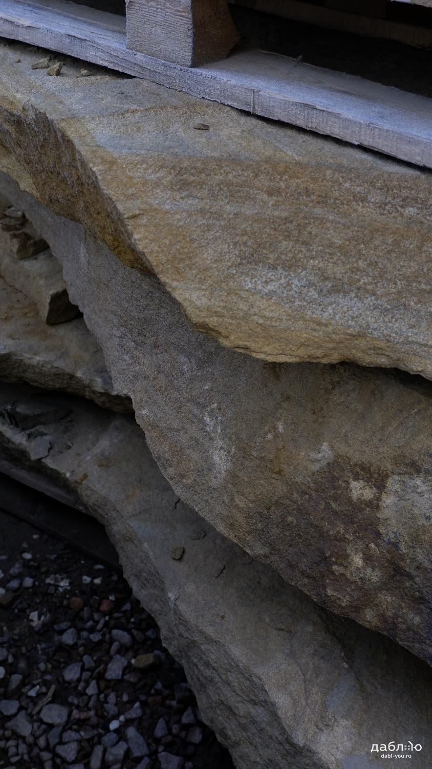 Толстомерная ступень из бежевого песчаника. Красивый материал для украшения Вашего участка. Можно использовать для создания лестницы, водопадов, водоемов.Характеристики