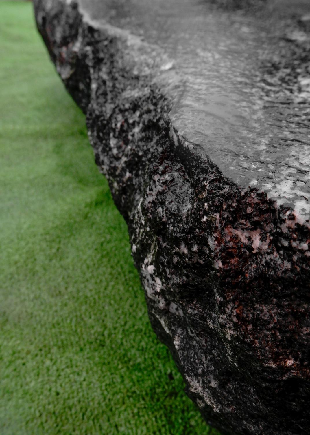 Толстомерная ступень из гранита Гранатовый амфиболит рубленая. Верхняя грань термообработанная, лицевая грань имеет колотую фактуру, остальные пиленые. Гранитная ступень демонстрирует не только прочность, но и стильный дизайн, вписываясь в различные архитектурные решения.Характеристики