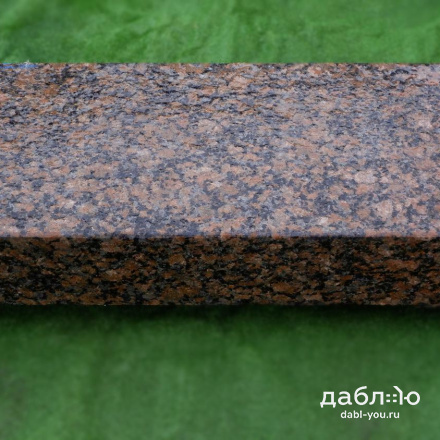 Толстомерная ступень из гранита Красногорский пиленая. Верхняя и передняя лицевая грань термообработанная, остальные грани пиленые. Гранитная ступень демонстрирует не только прочность, но и стильный дизайн, вписываясь в различные архитектурные решения.Характеристики