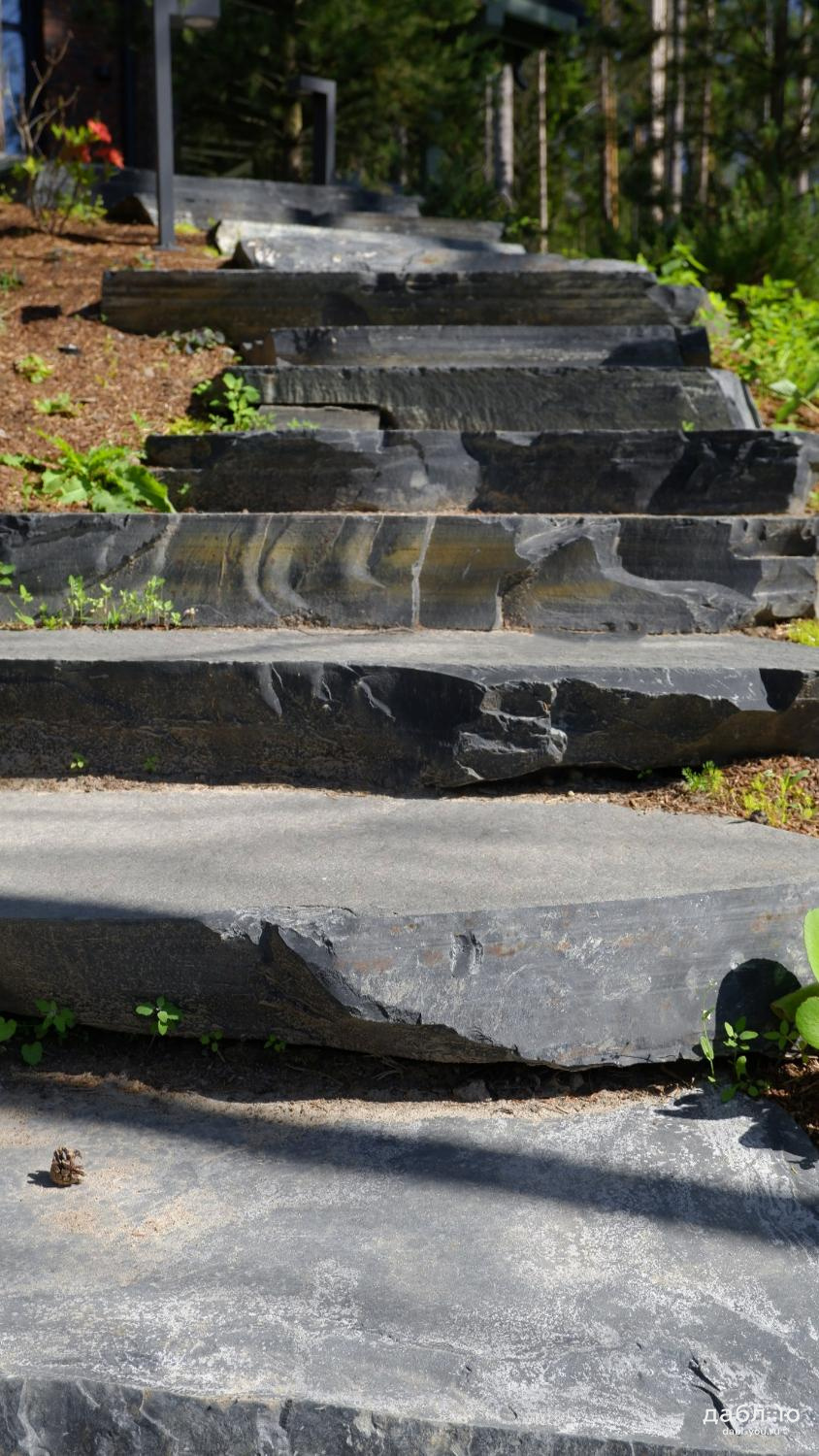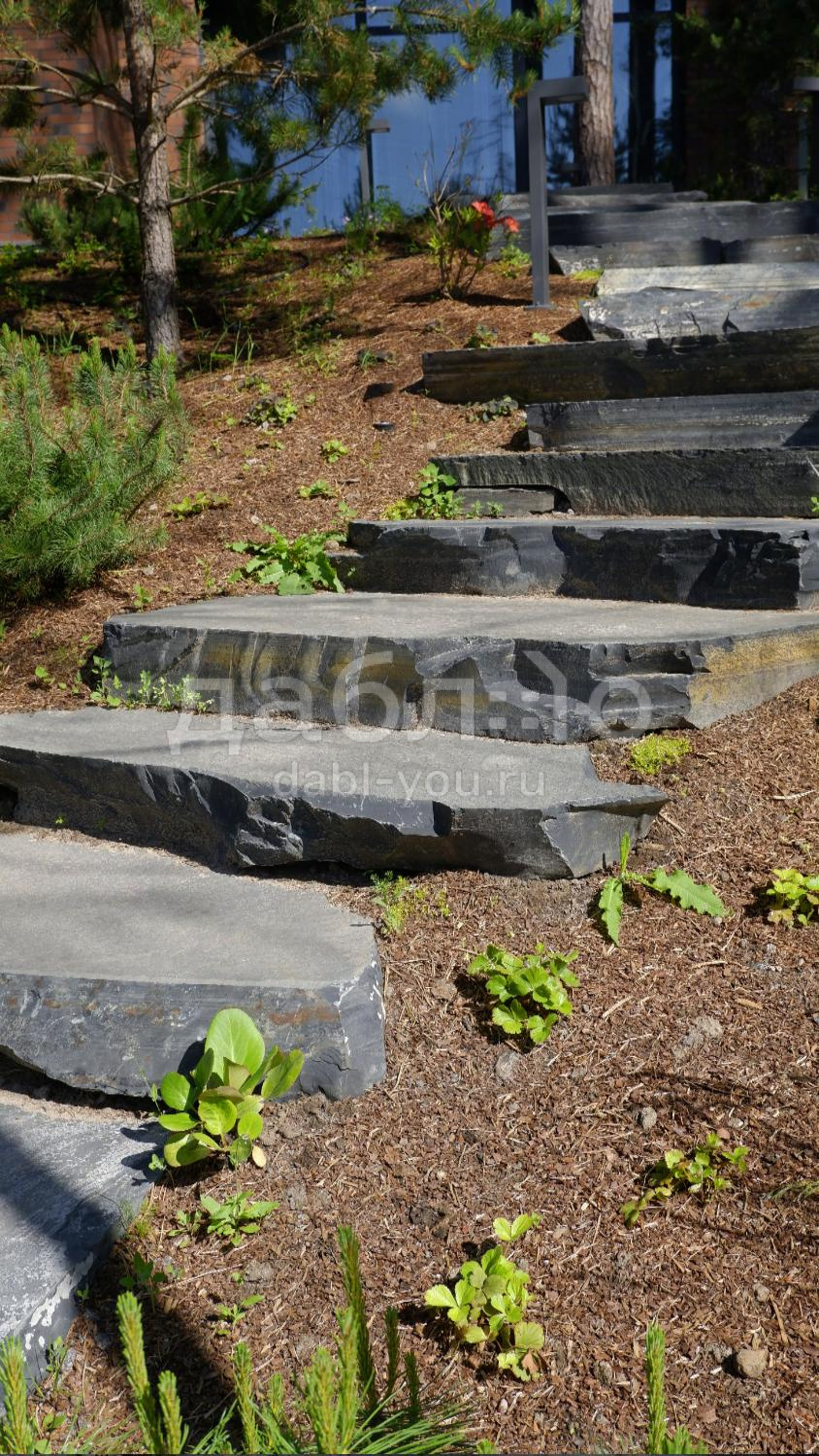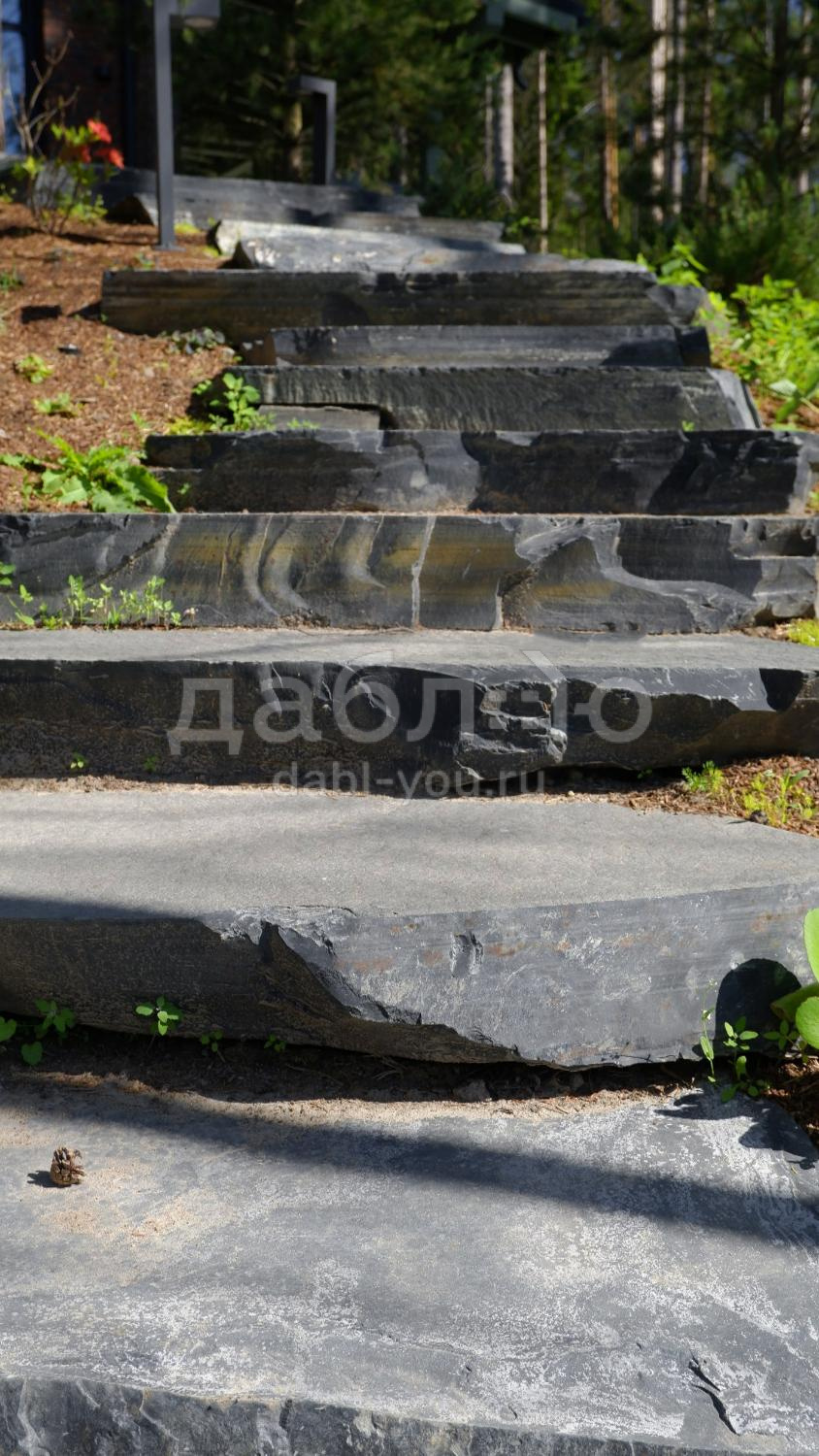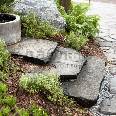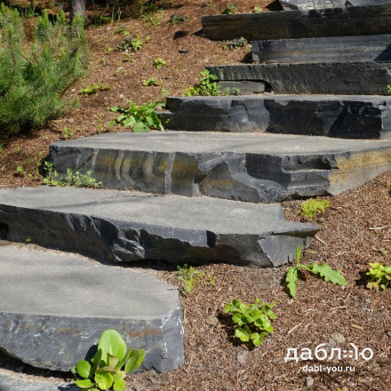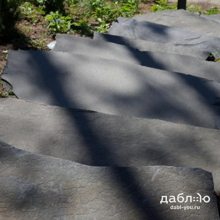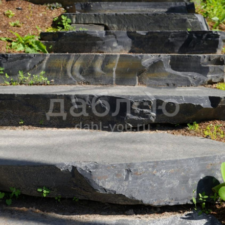 Ступень из шунгита естественной природной фактуры.Толщина плиты от 80 до 200 мм, габариты в среднем 1000х400 мм и более.
