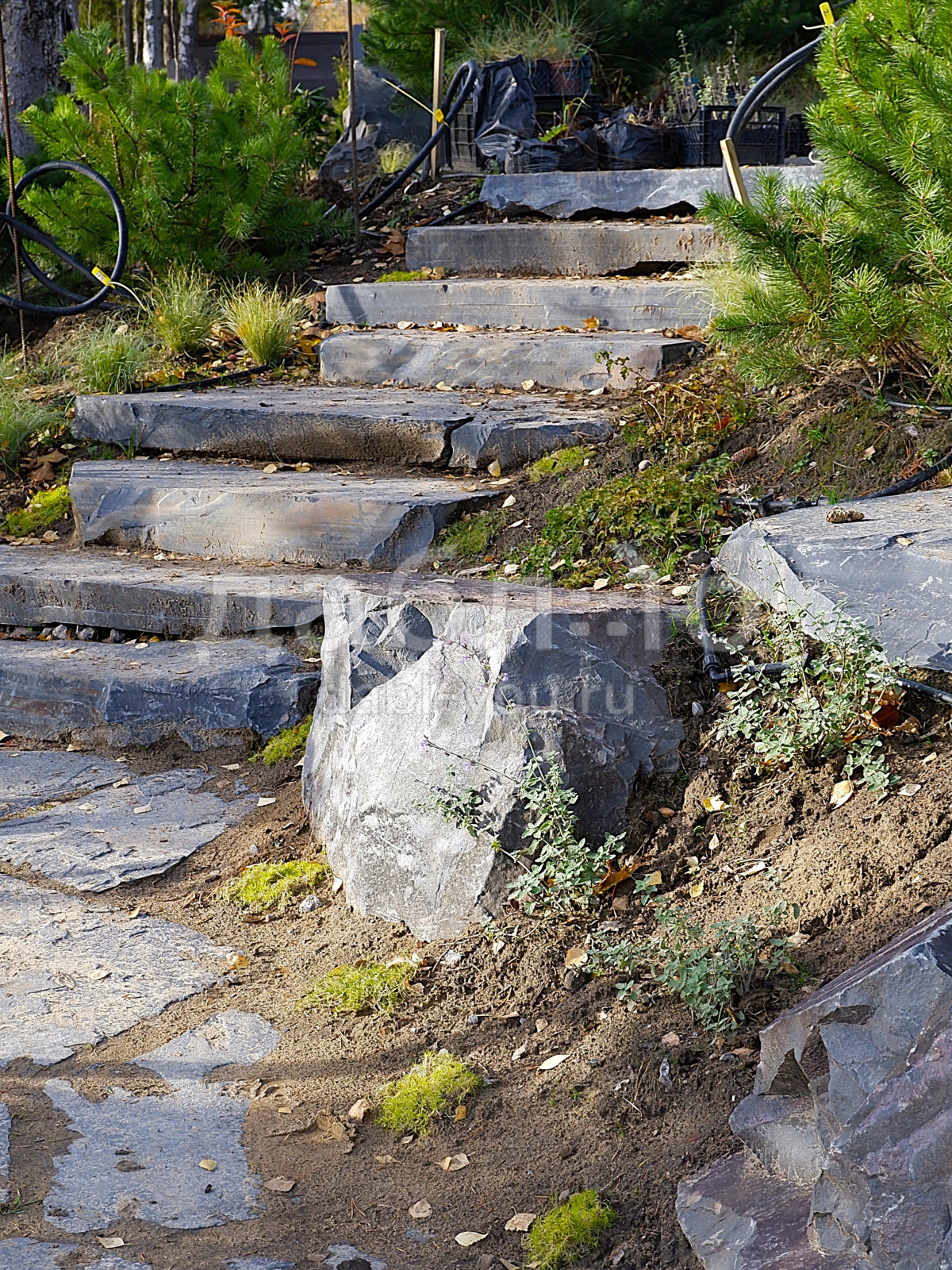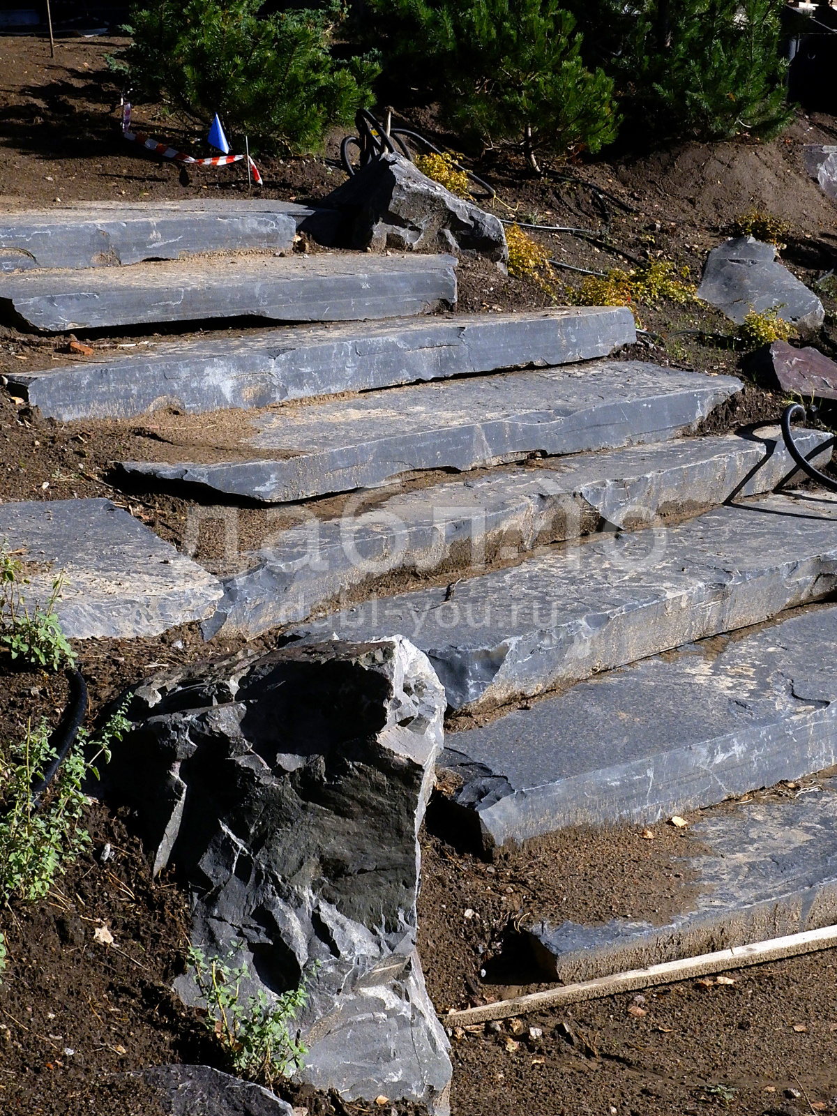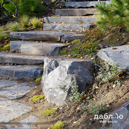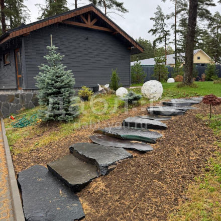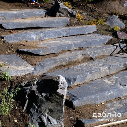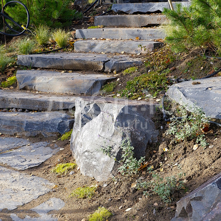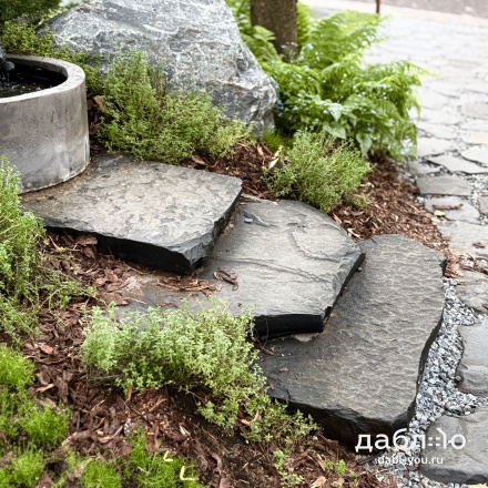 Ступень из шунгита естественной природной фактуры.Толщина плиты от 80 до 200 мм, габариты в среднем 1000х400 мм и более.