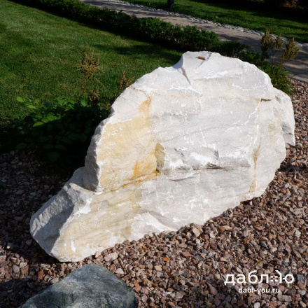 Валун Мрамор молочный. С помощью данного материала создаются цветники, каменистые сады, фонтаны и многое другое. В ландшафтном дизайне глыбы отлично сочетаются с каменной крошкой и применяются как в виде ландшафтных композиций из нескольких камней, так и в качестве отдельных объектов.Область применения: ландшафт