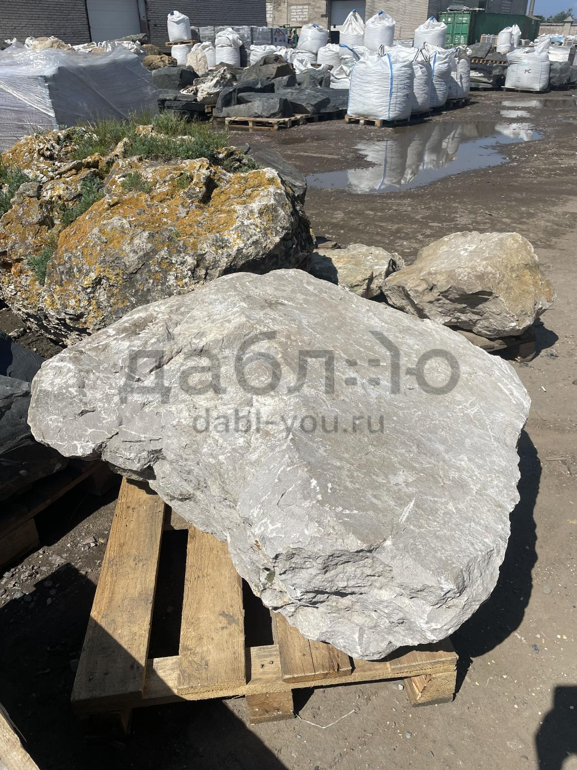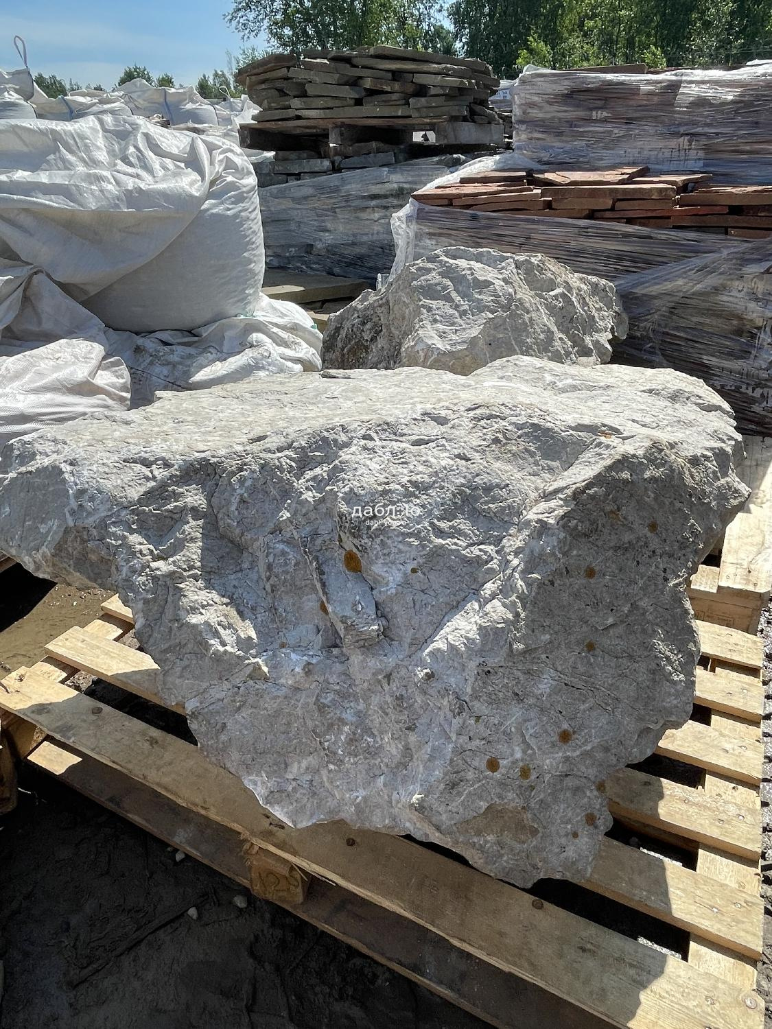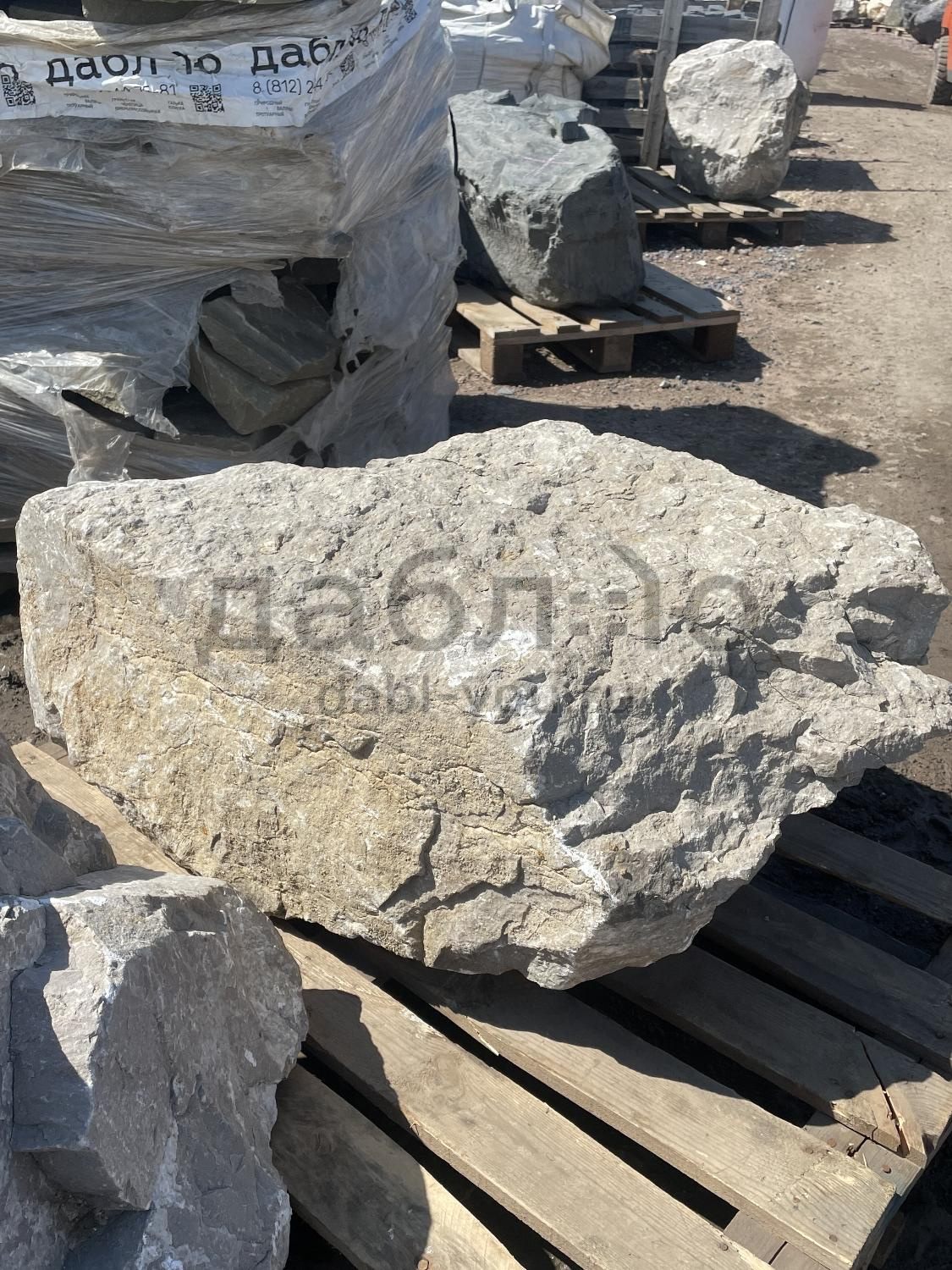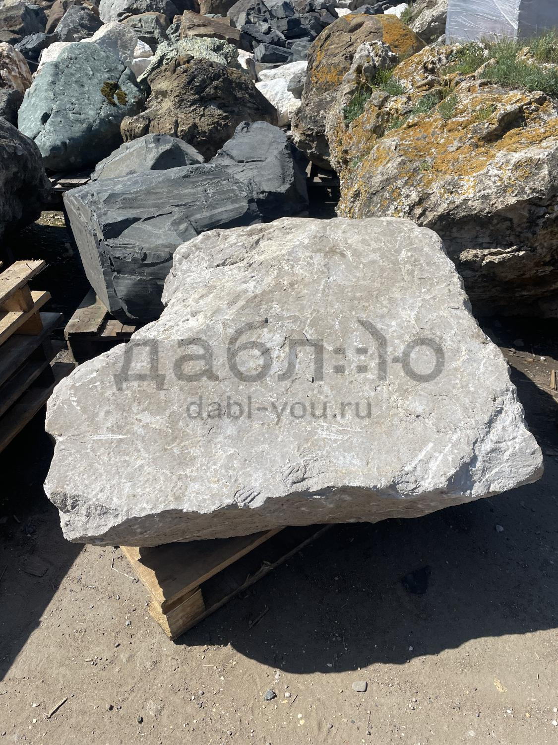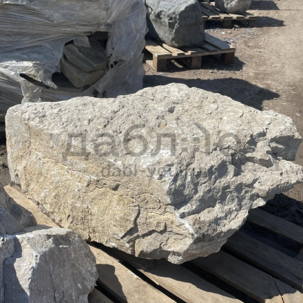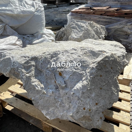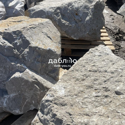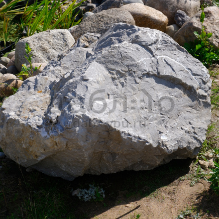 Валун мрамор серый, с неровной поверхностью и однотонным серым цветом, универсален для различных декоративных и ландшафтных задач.Область применения: ландшафтный дизайн