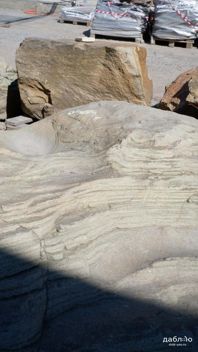 Валун Речной песчаник плоский. Благодаря своему химическому составу и физико-механическим характеристикам песчаник является очень прочным материалом. Песчаник в форме валуна применяется для ландшафт. Его приятный и спокойный зеленый оттенок подойдет для реализации множества дизайнерских решений.Фактура: валун