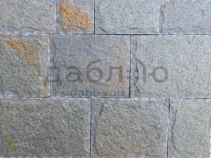 Кварцит серебрит плитка с заколом 20-30 мм. Имеет множество небольших слюдовых вкраплений, из-за чего при попадании солнечного света красиво мерцает. Так как камень очень прочен и невосприимчив к погодным условиям, его очень любят класть снаружи.- Вес: 60 кг/м2